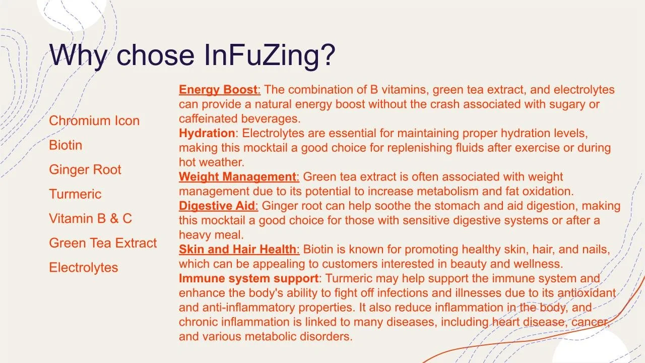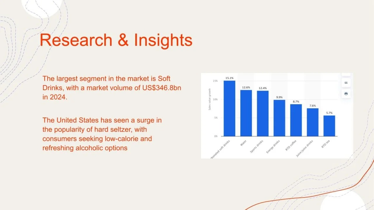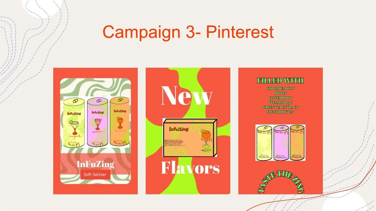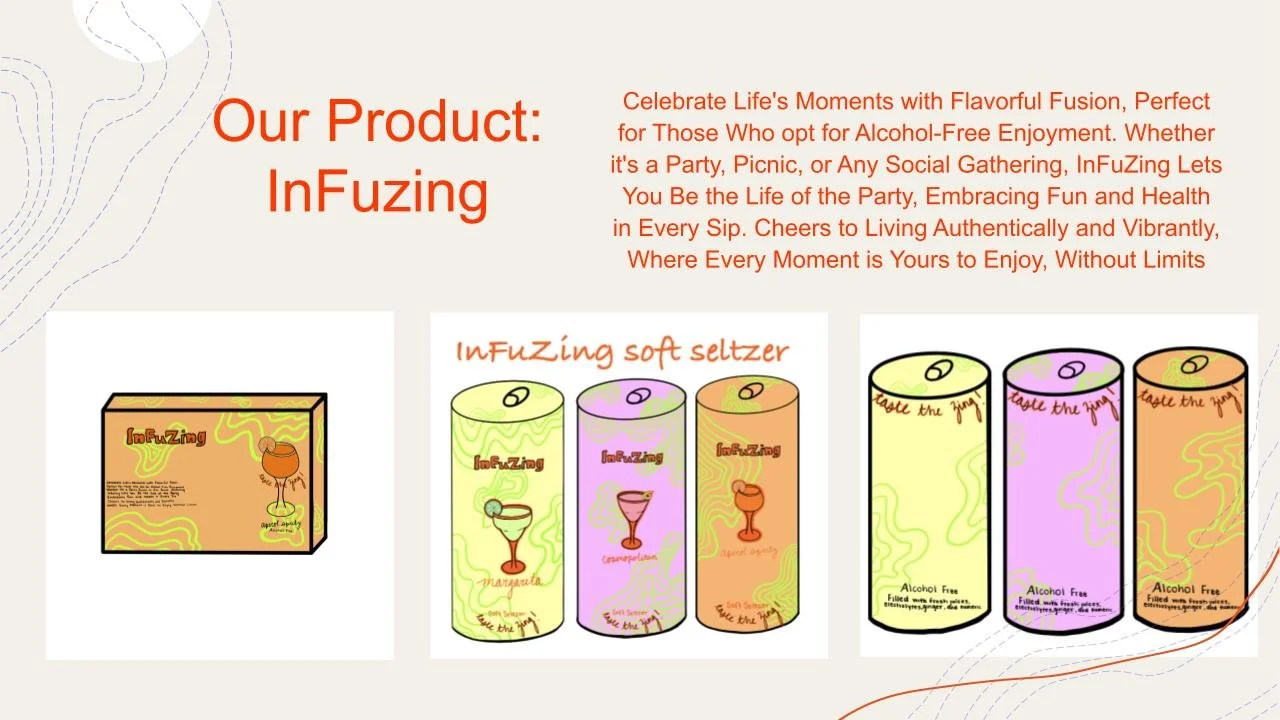 In collaboration with Mackenzie A. H, we contributed to all aspects of the project. We divided the work evenly and supported each other throughout. During the brainstorming phase, we focused on creating a non-alcoholic seltzer with nutritional benefits. Our responsibilities included conducting research on seltzers to support our pitch, developing insights, identifying our target audience, designing product packaging, and creating mockups for our promotional campaign.